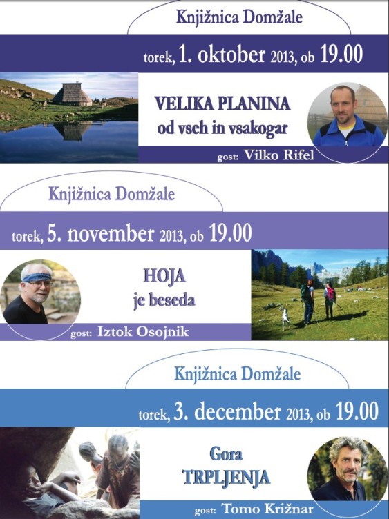 Tradicija domžalskih gorniških večerov je dolga že več kot dve desetletji.Gre za vsakoletni niz petih pogovorov v Knjižnici Domžale z različnimi gosti in gostjami, ki poslušalcem ter poslušalkam in gledalcem ter gledalkam odkrivajo lastn svet gora, raziskovalna, strokovna in znanstvena spoznanja o gorah in dosežke, ki v gorah (predvsem pa v glavah) premikajo meje mogočega.